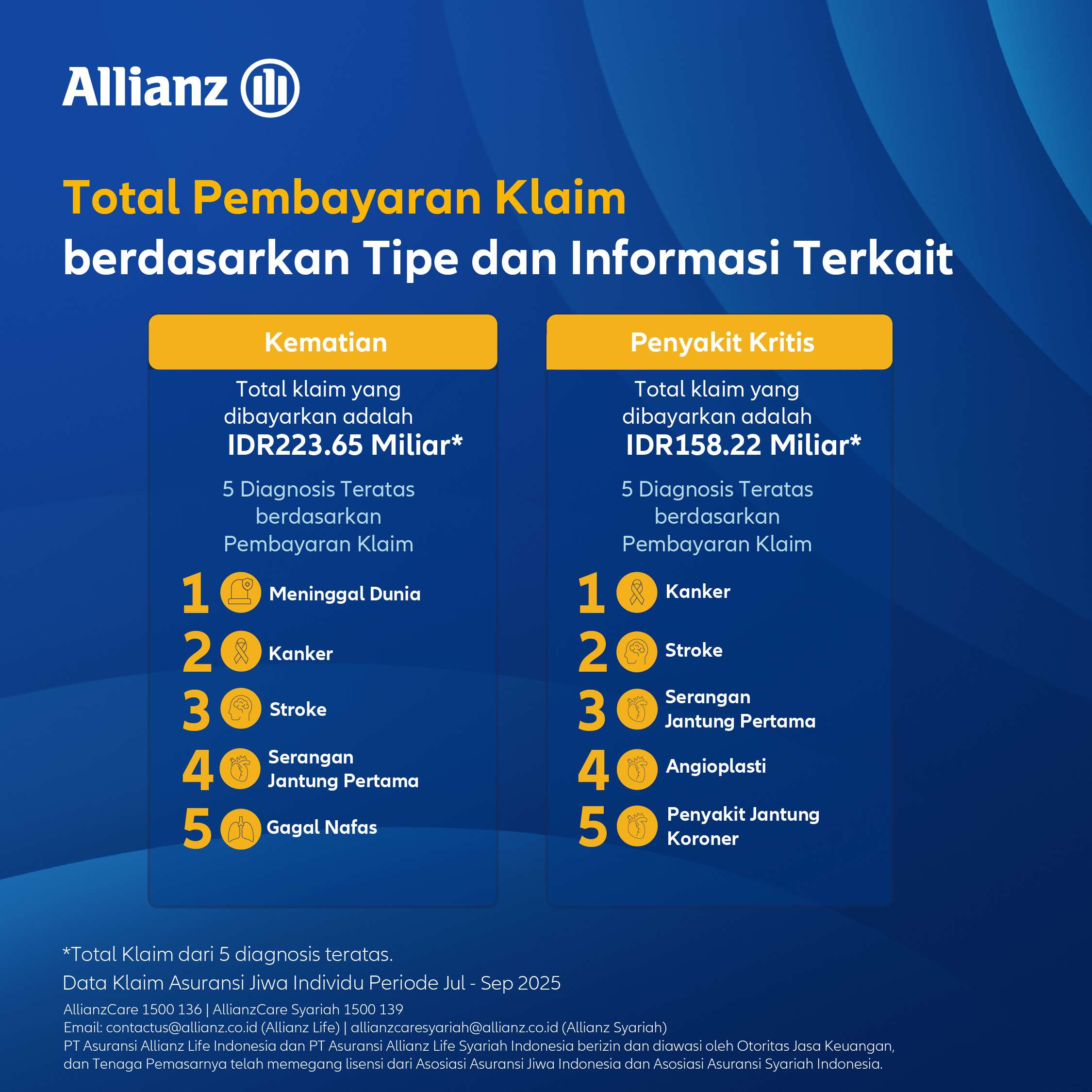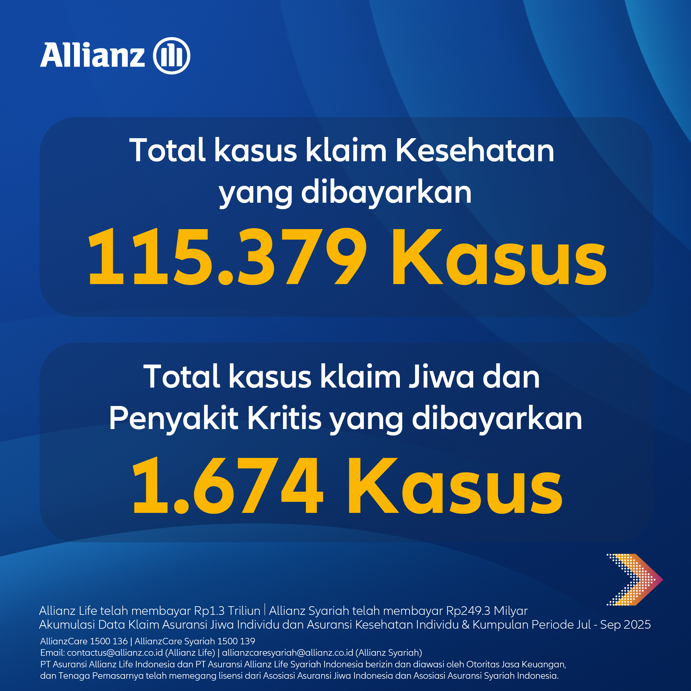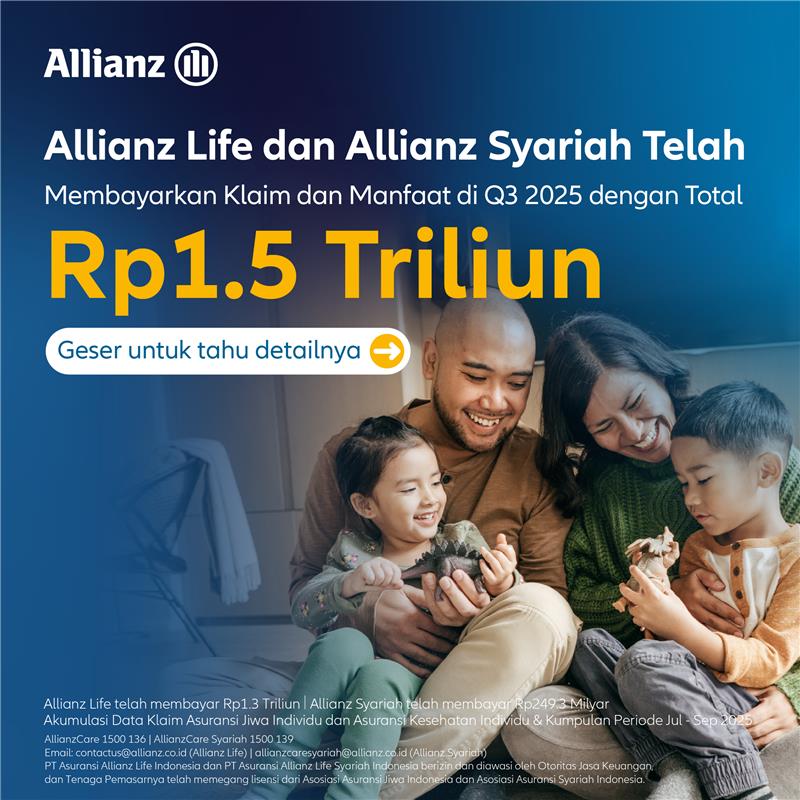 Selama periode Juli hingga September 2025, Allianz Life dan Allianz Syariah telah membayarkan klaim dan manfaat dengan total nilai Rp1,5 triliun.